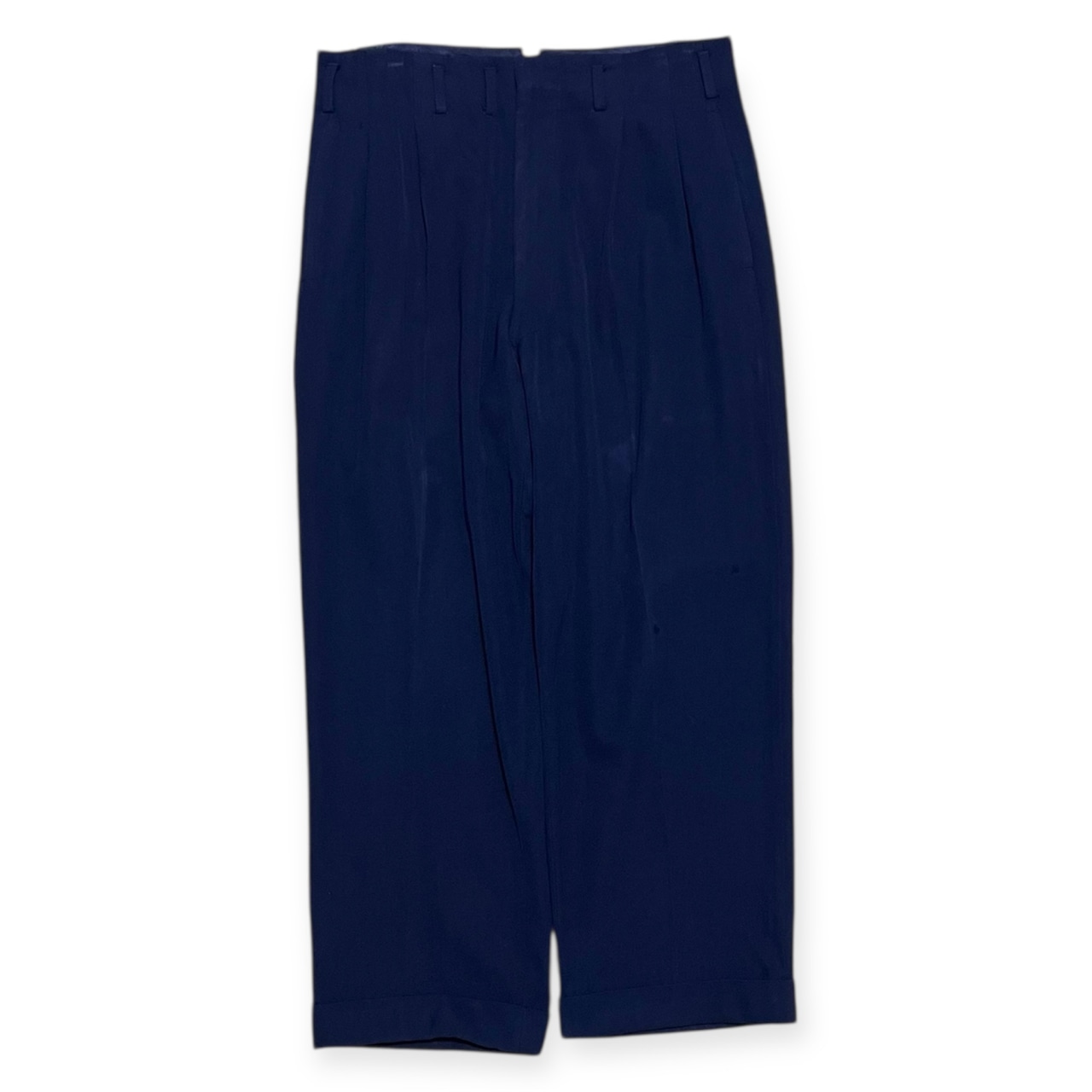 シルエットは深めの2タック入りワイドテーパード。