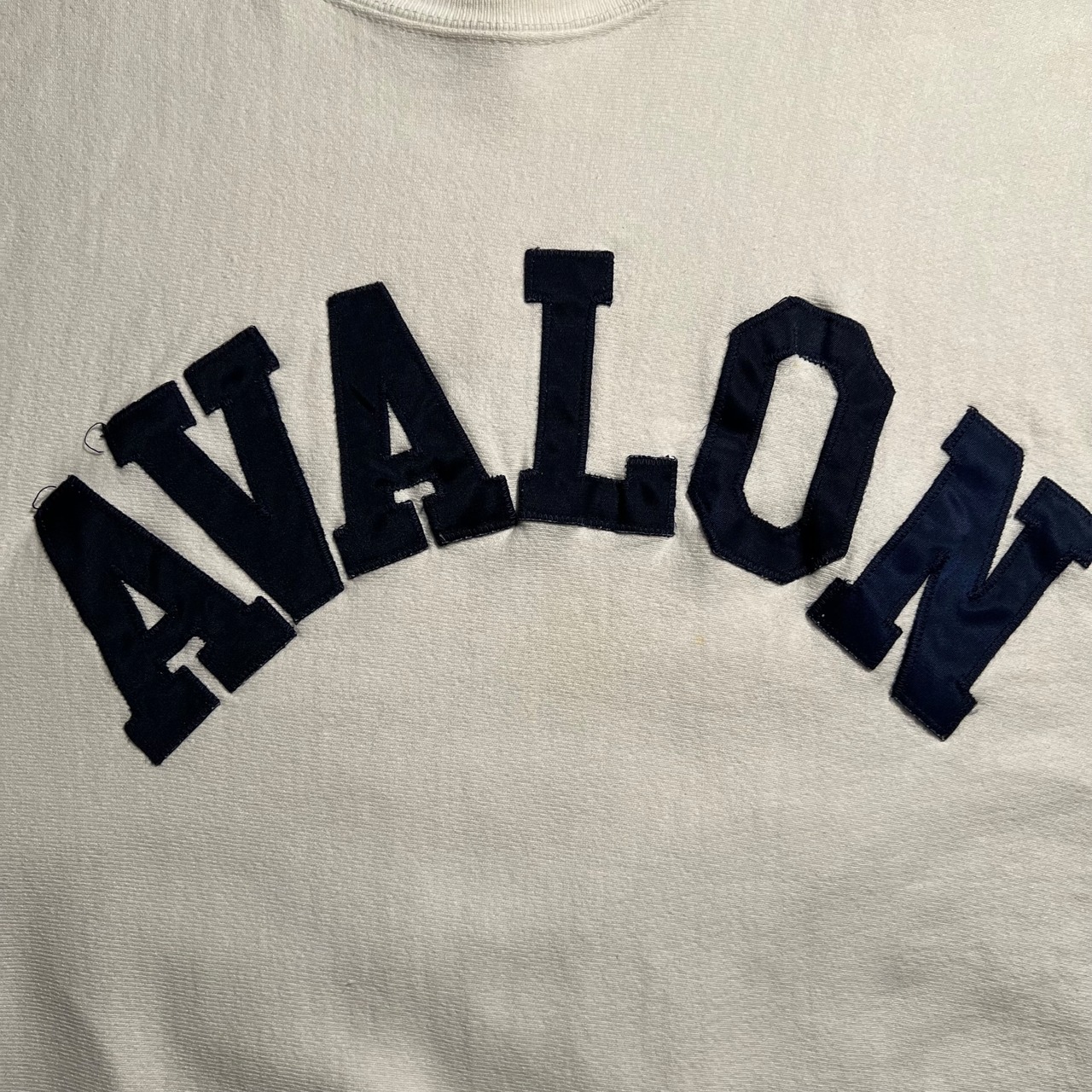 胸には立体感のあるサテンワッペンで “AVALON” のアーチロゴが縫い付けられ、