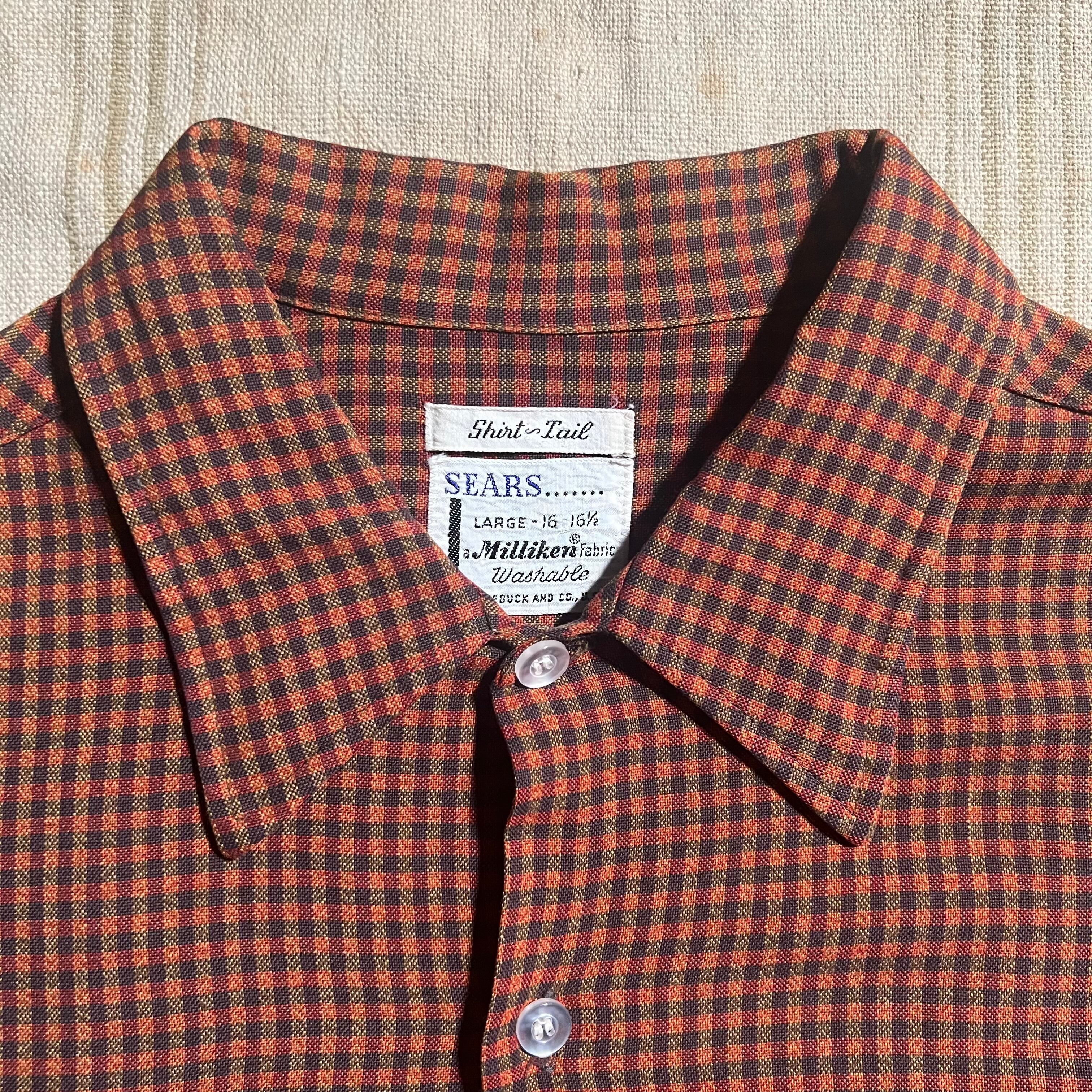 60s-|SEARS|Shirt-Tail チェックシャツ| Milliken Fabric|16-16½