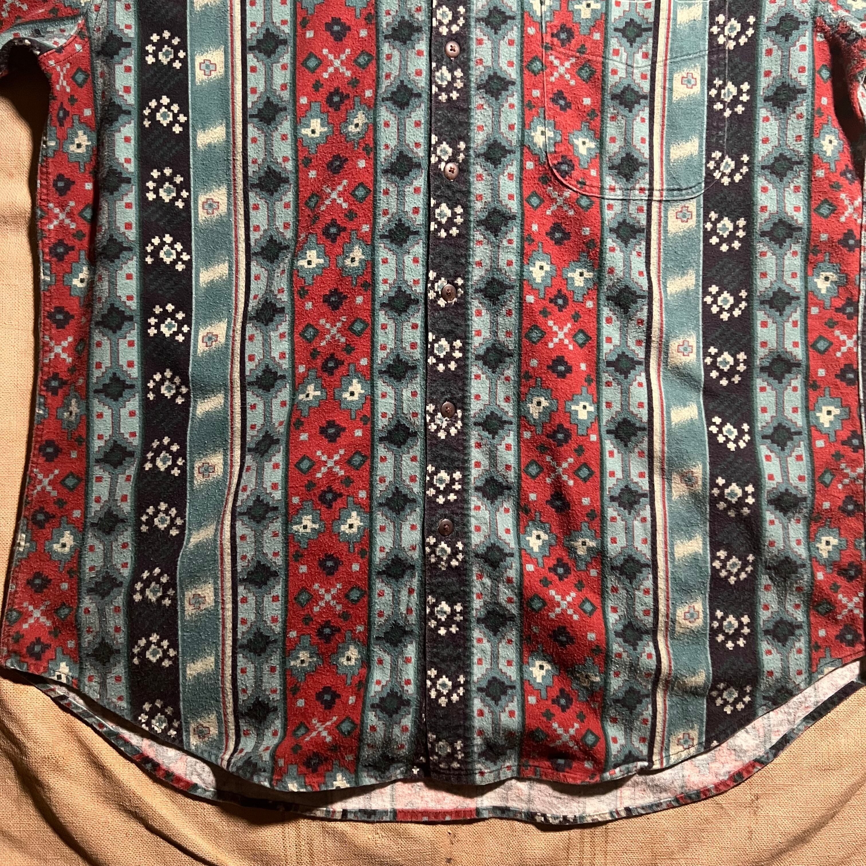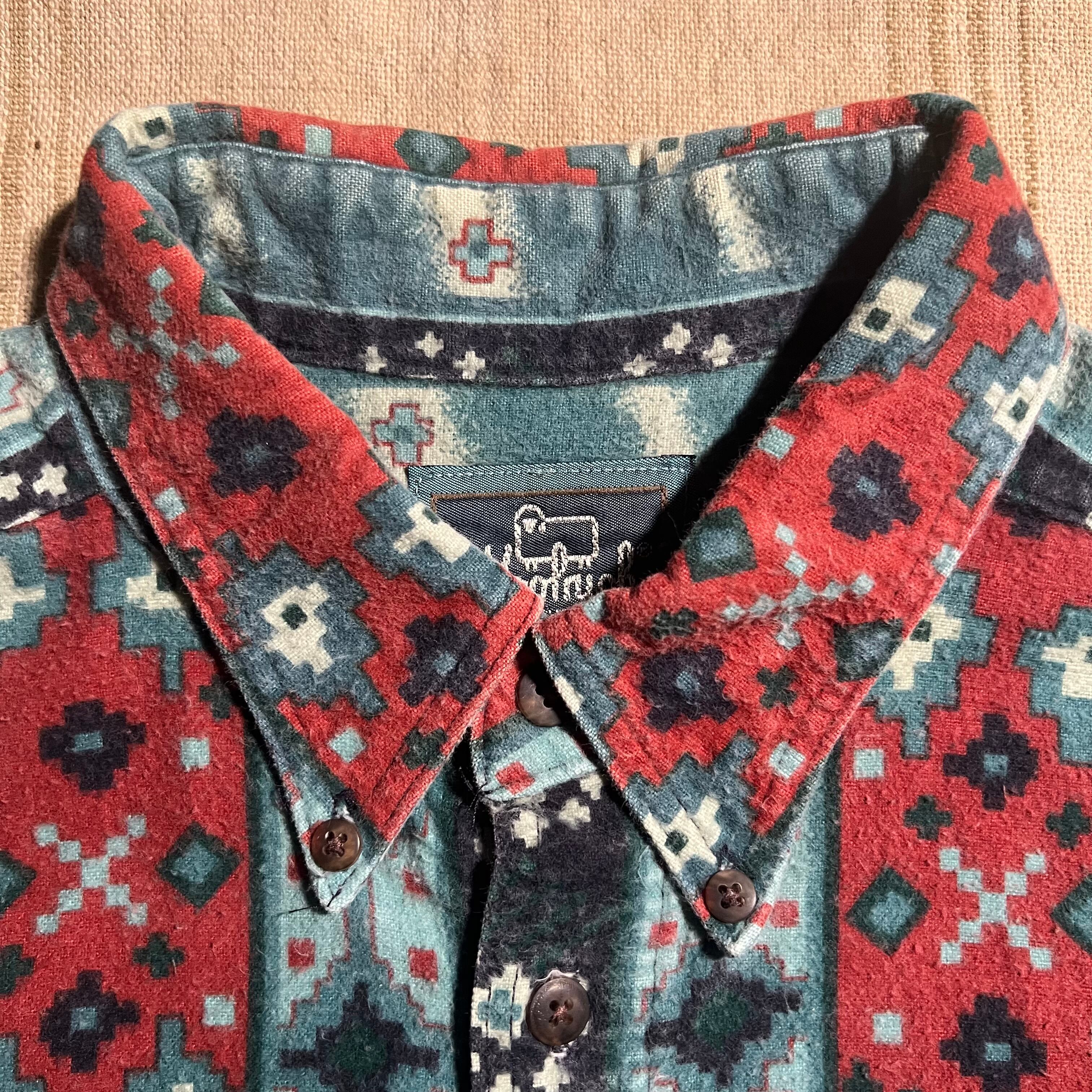 80s~90s|Woolrich|総柄プリントネルシャツ|ネイティブストライプ柄 USA製 L〜XL相当 コンディションB
