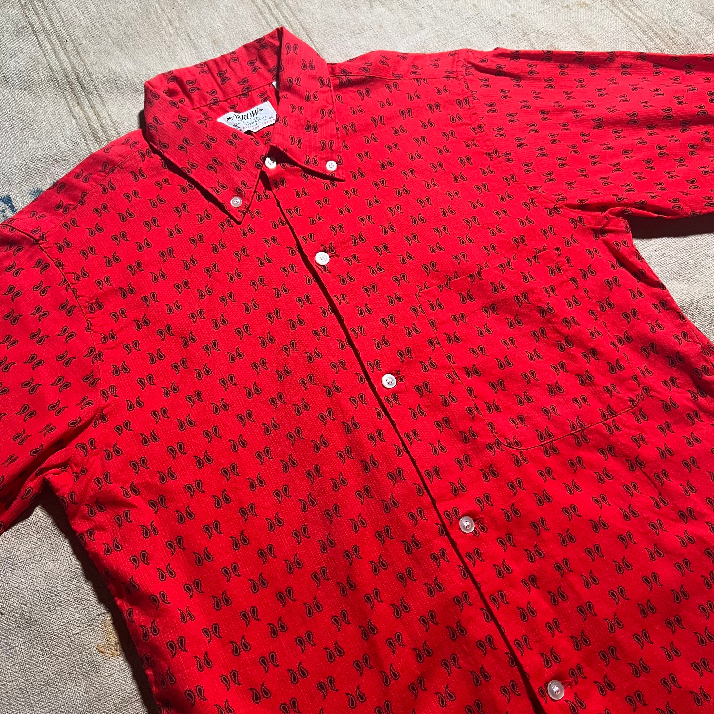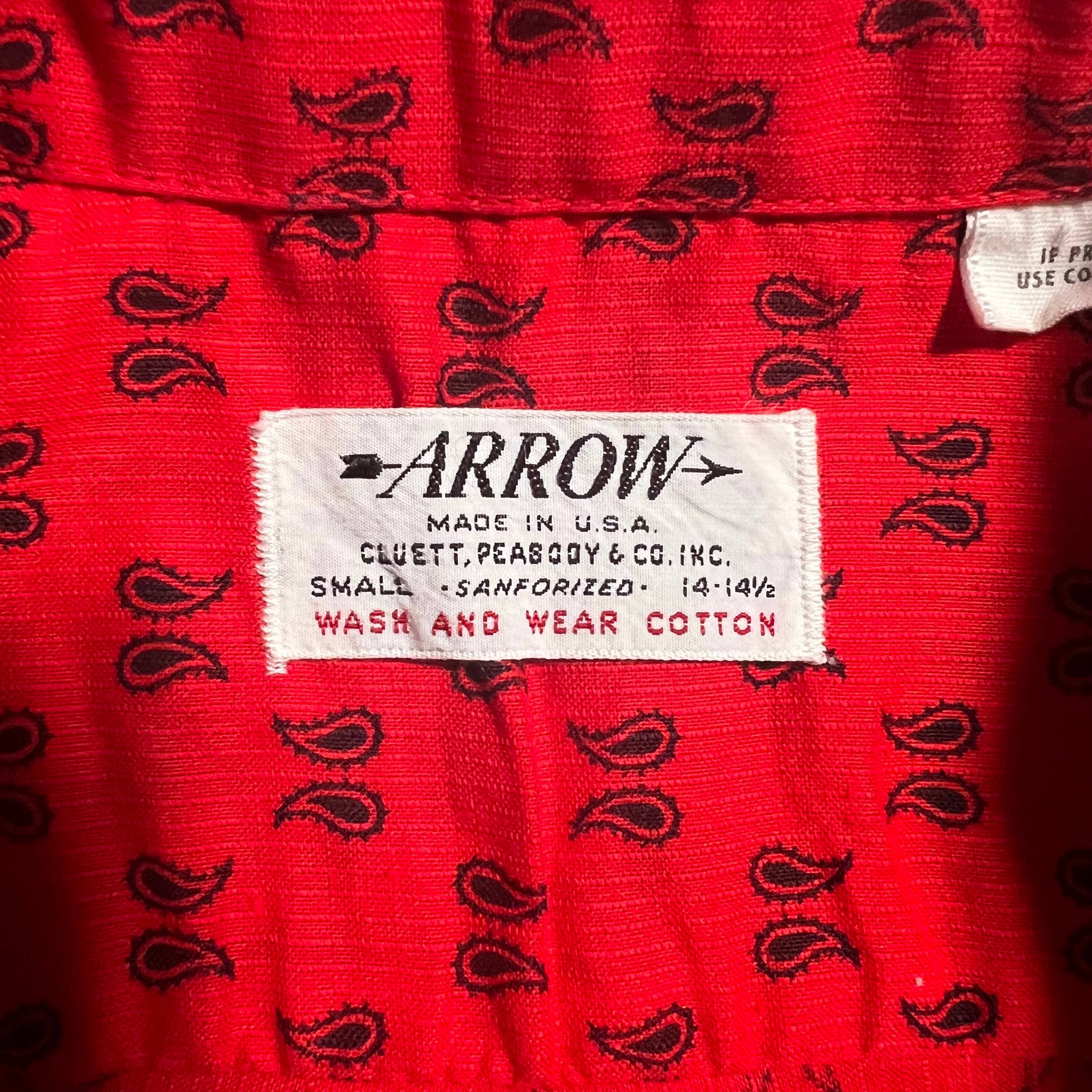 60s|ARROW|ボタンダウンシャツ|ペイズリー総柄 USA製 Sanforized M相当 コンディションA