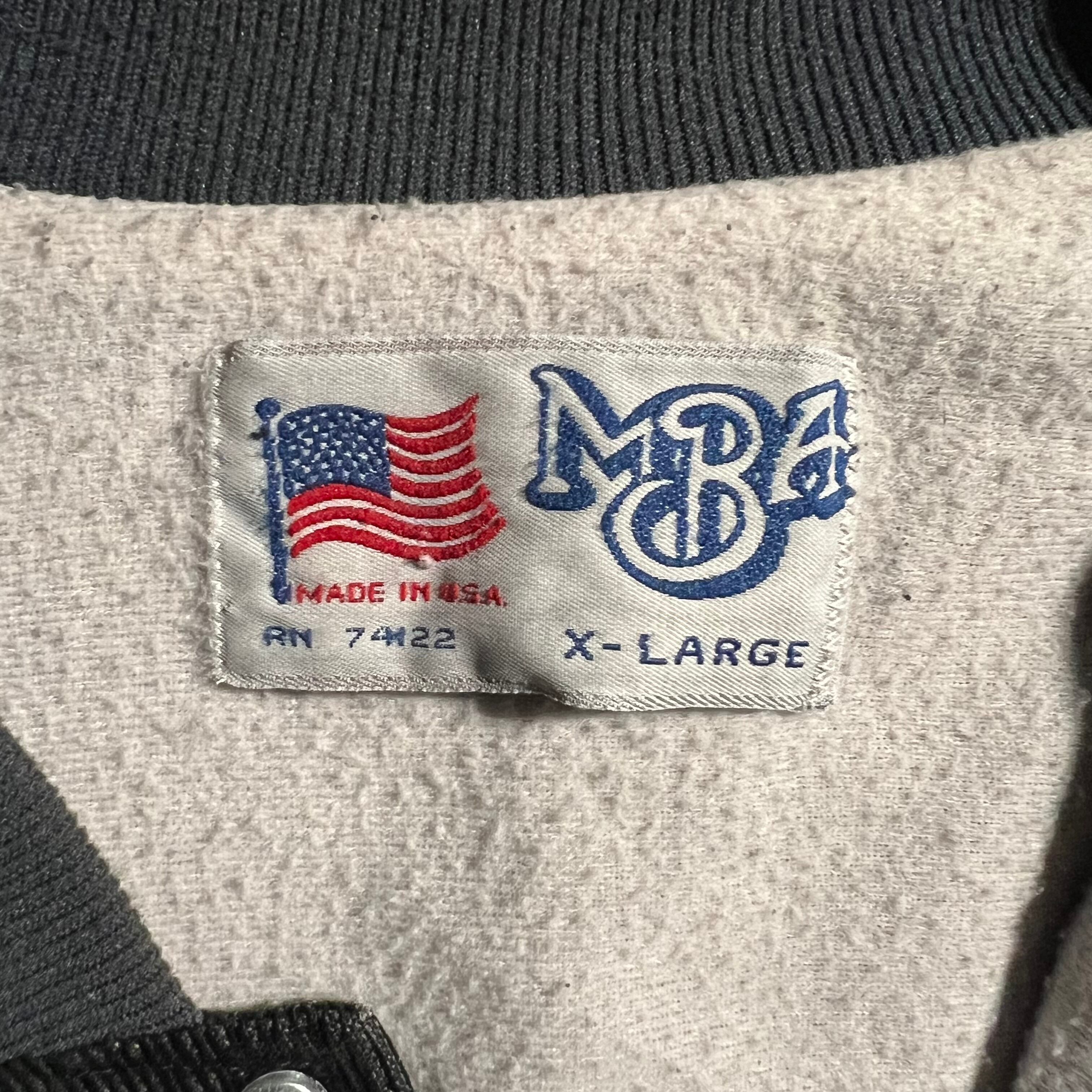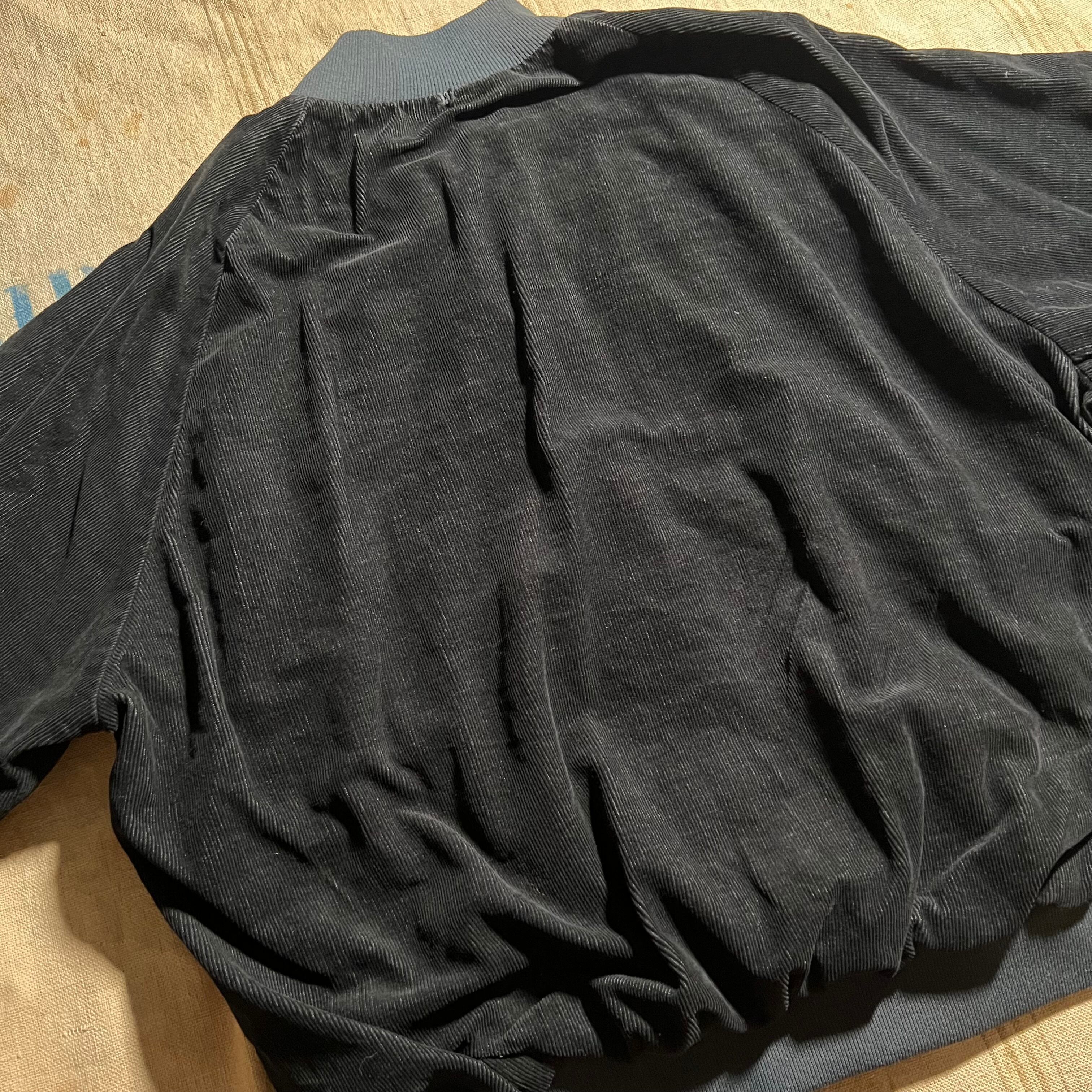 80s〜90s|M.B.A|コーデュロイスタジャン|ブラック USA製 ラグランスリーブ 刺繍ロゴ|コンディション B