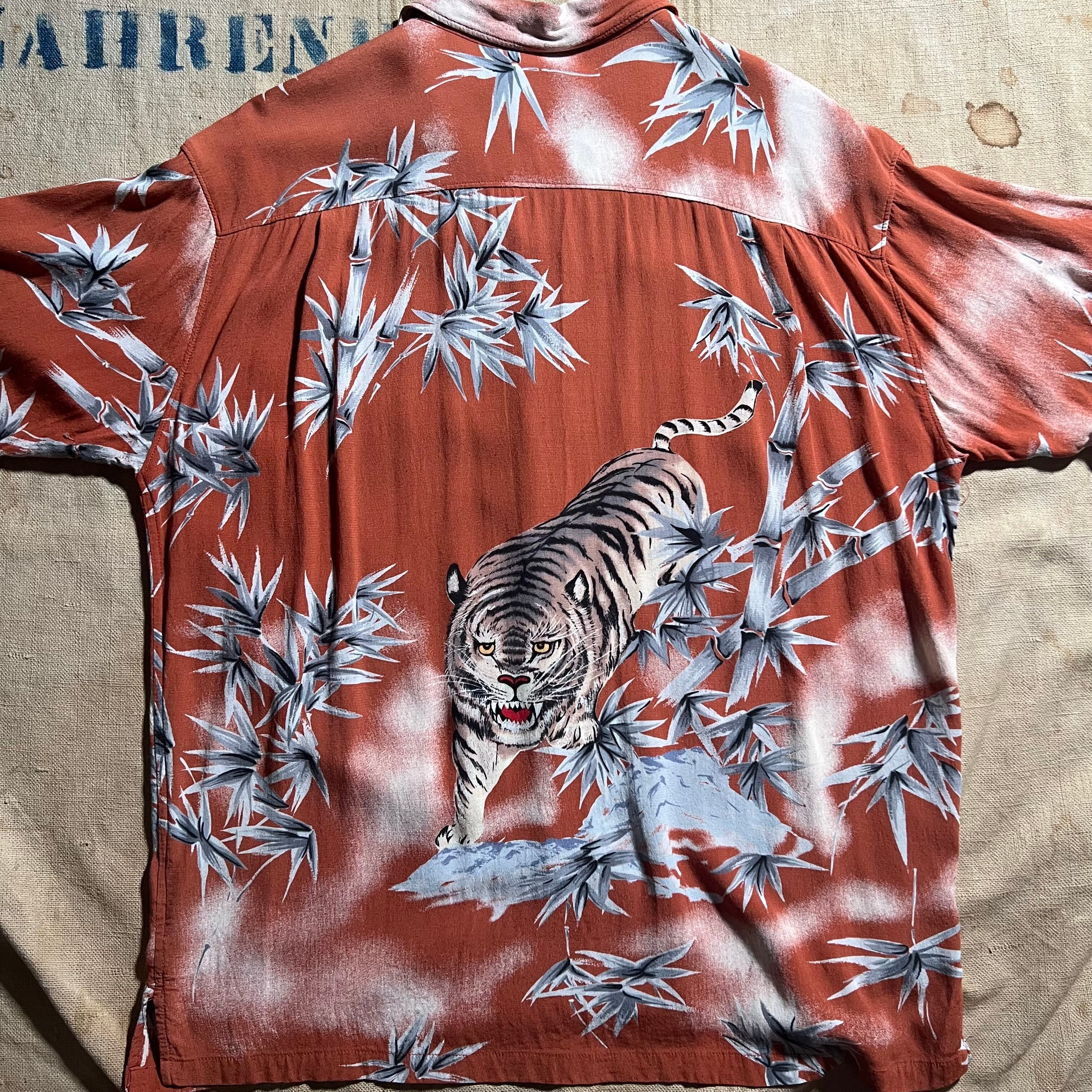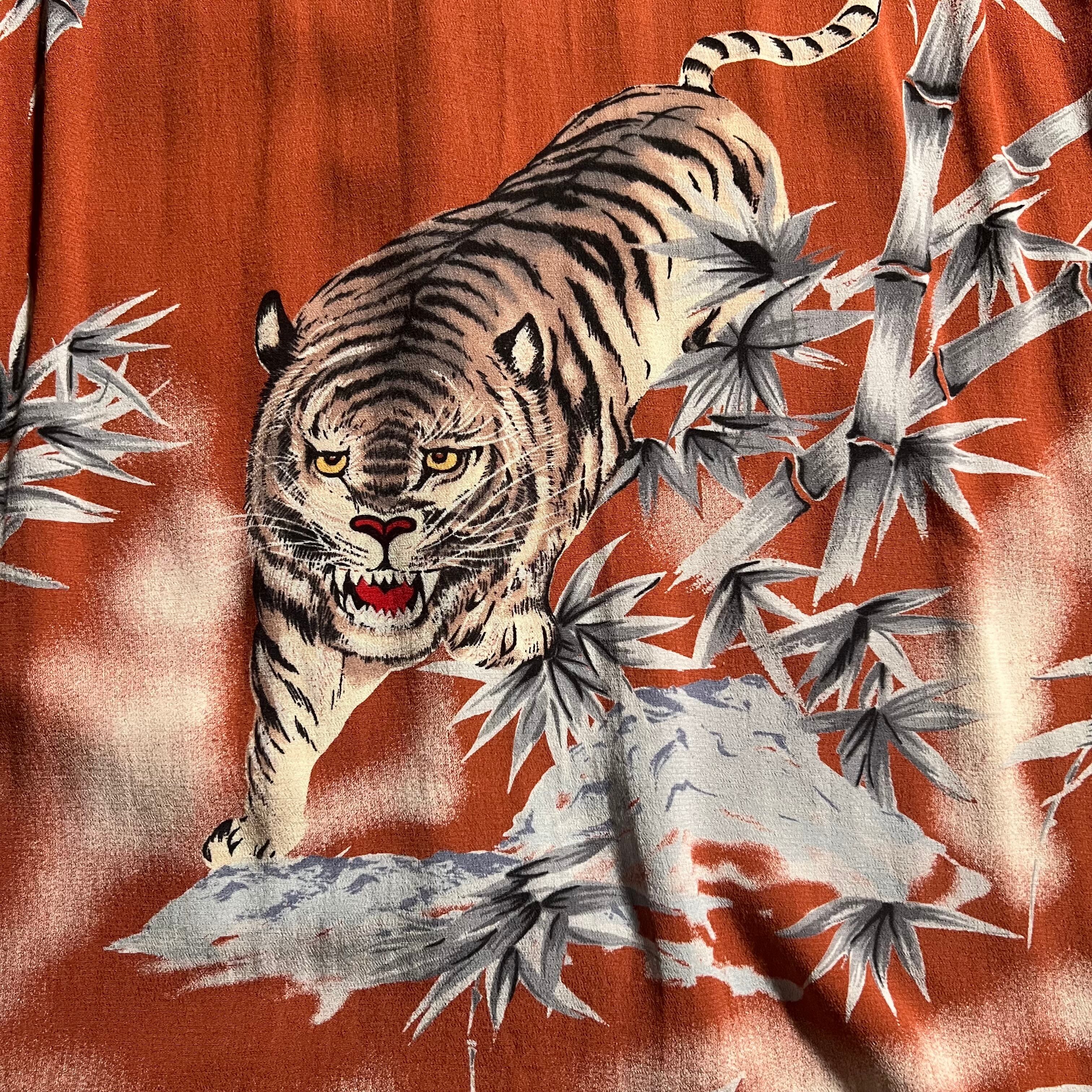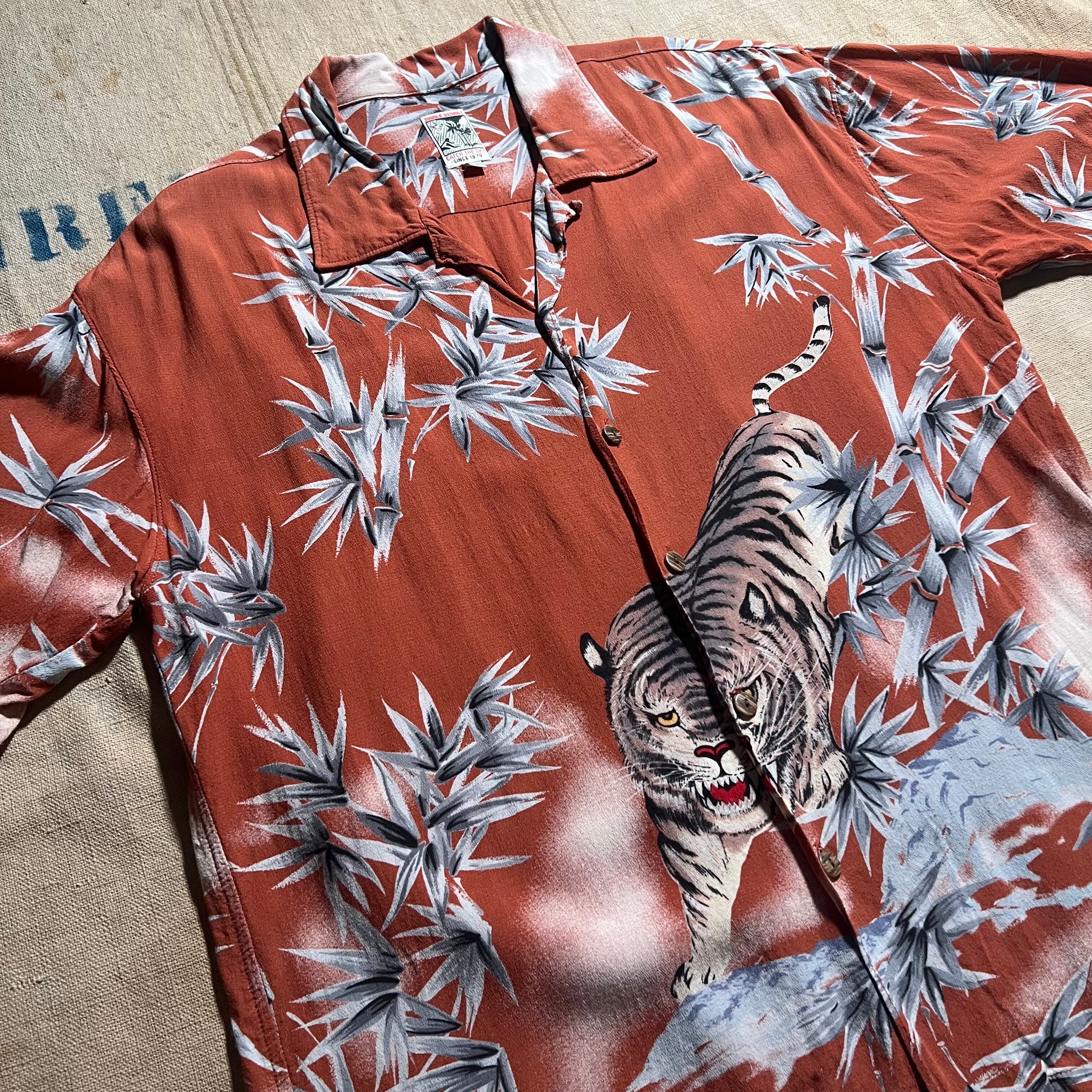 90s〜|JUNGLE STORM|半袖アロハシャツ|虎柄 バンブー 和柄 開襟 レーヨン M|コンディションB