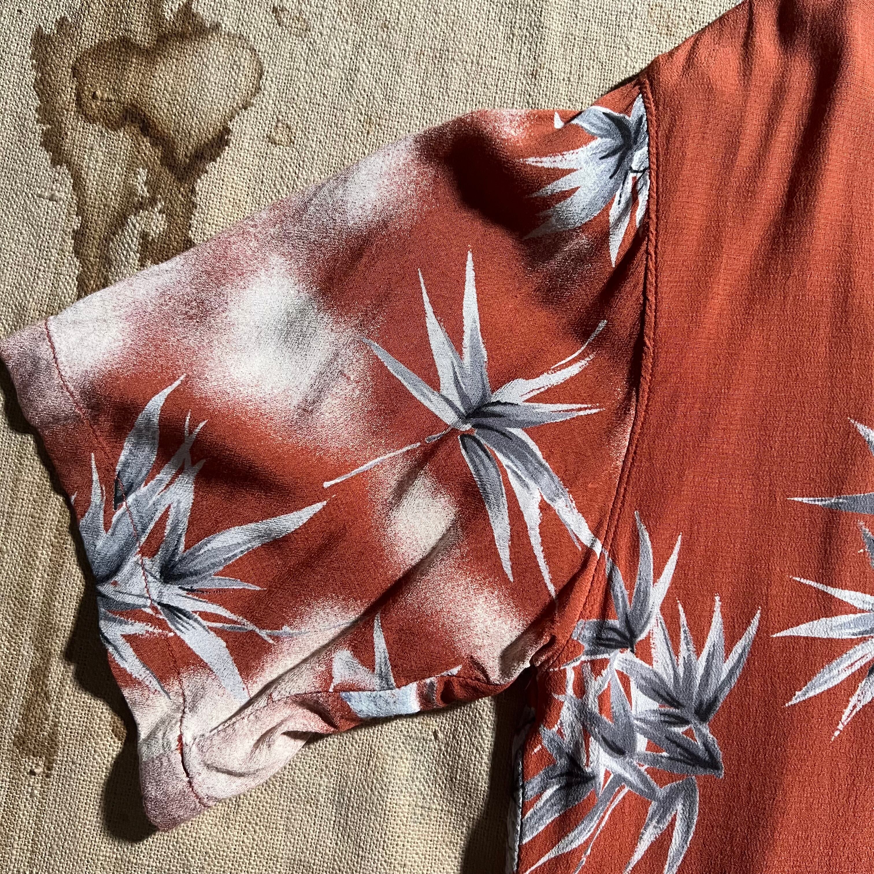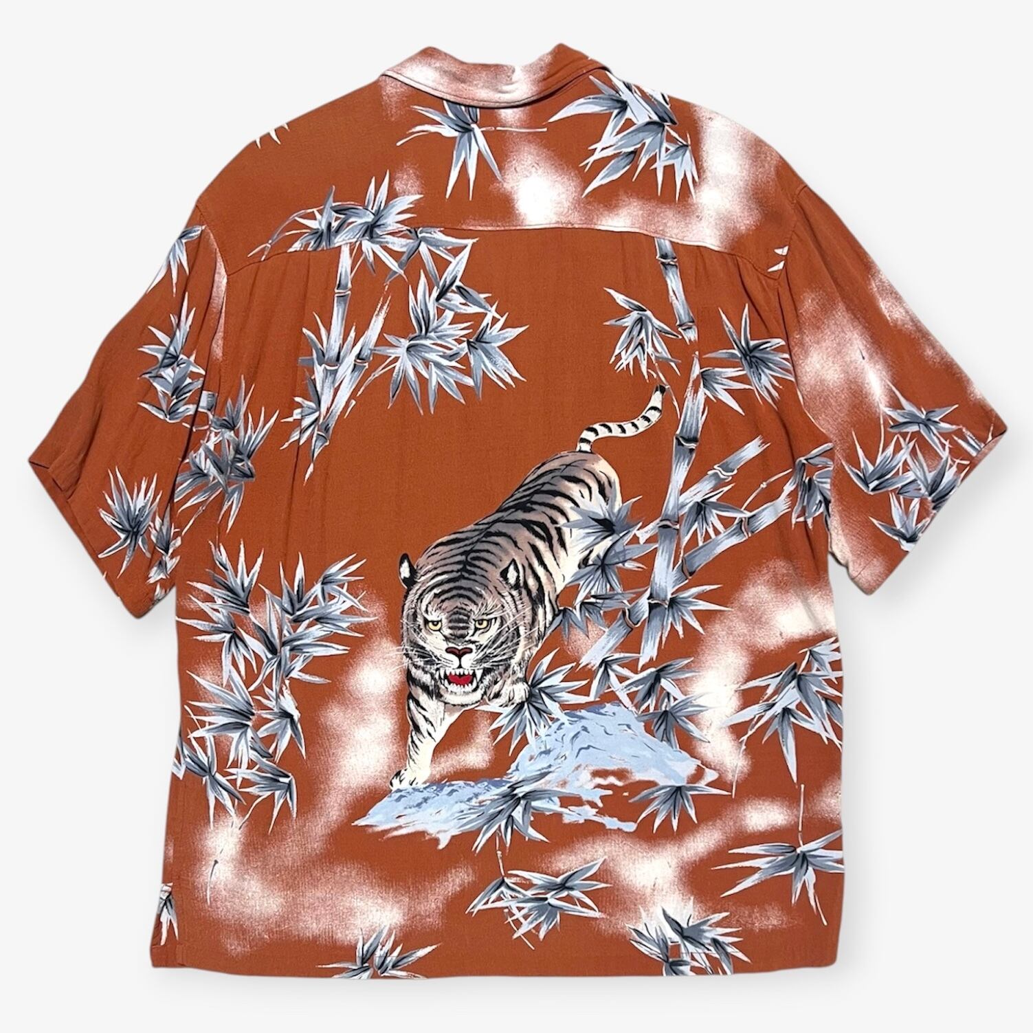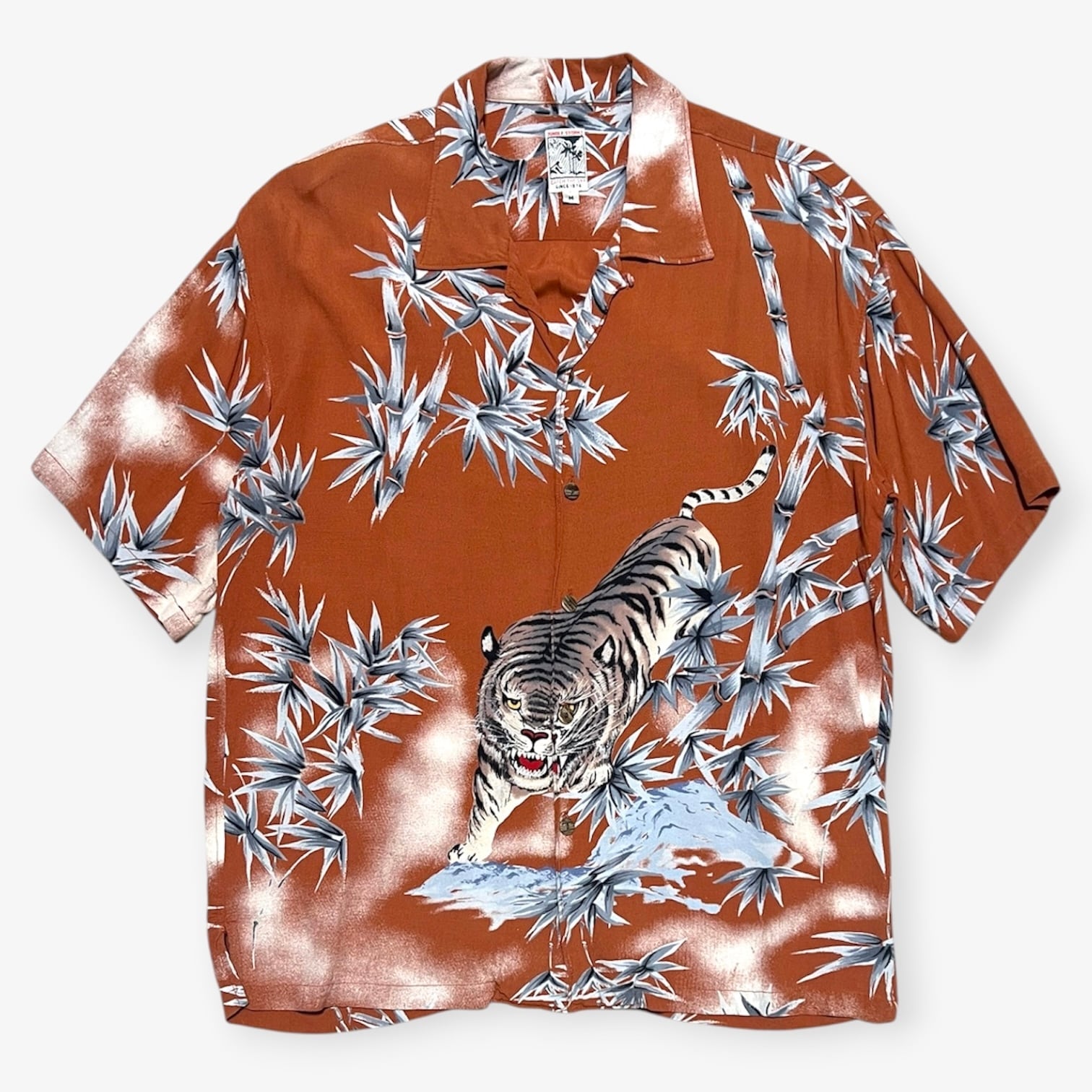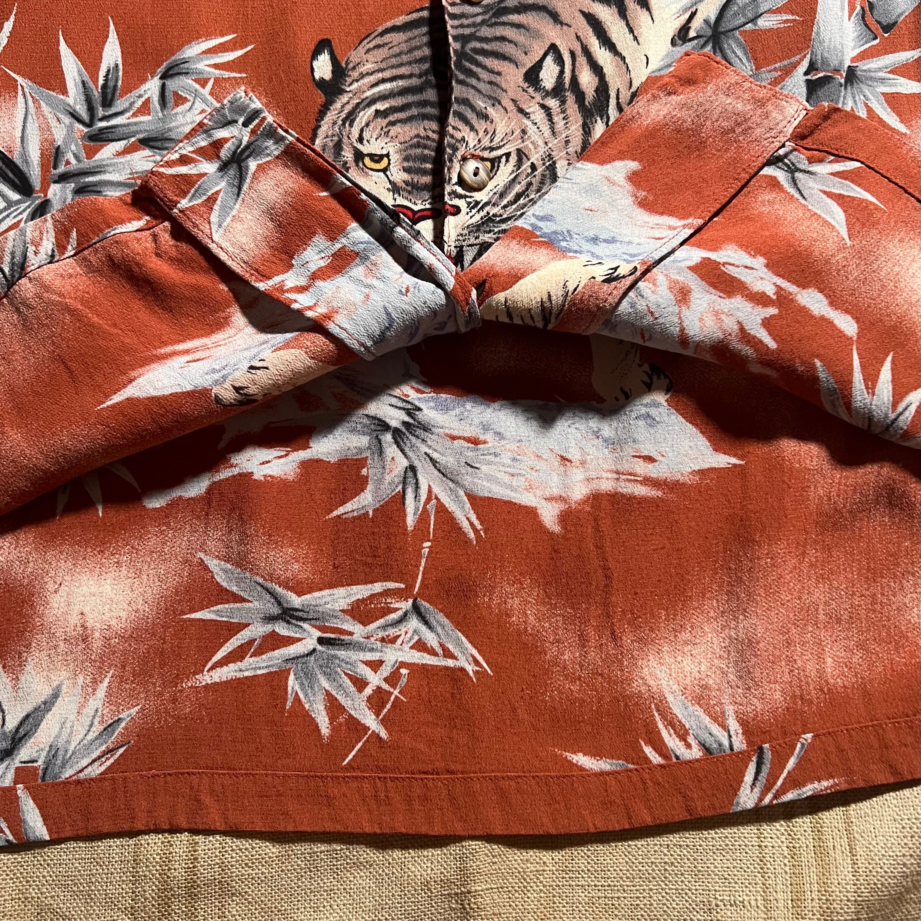 90s〜|JUNGLE STORM|半袖アロハシャツ|虎柄 バンブー 和柄 開襟 レーヨン M|コンディションB